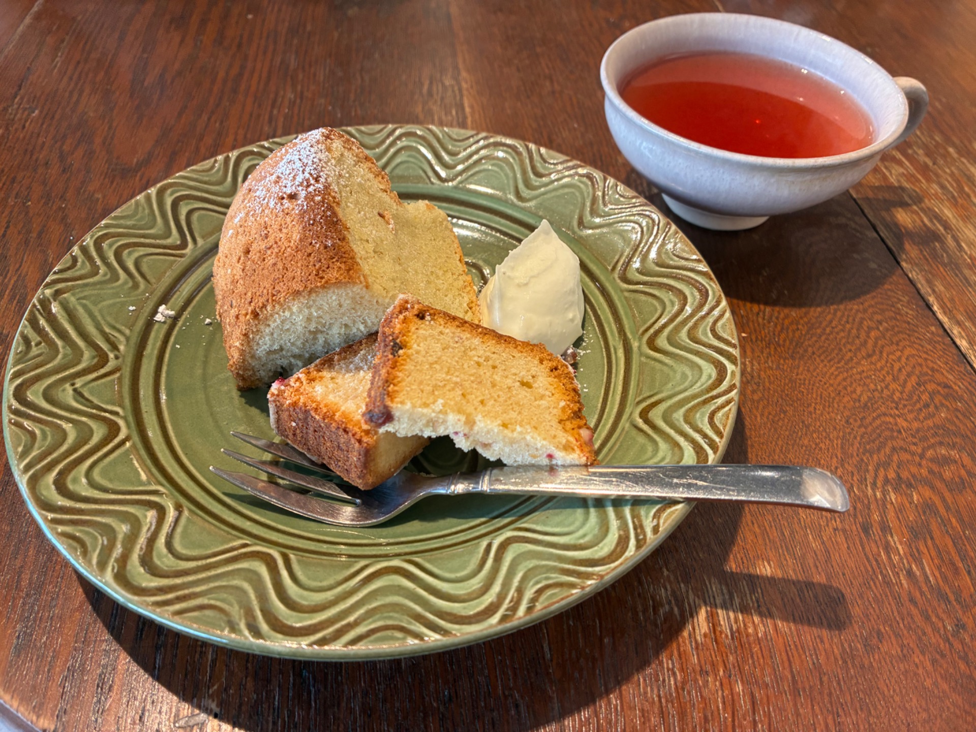 マダレーナカフェオーナーの高森さんとは、講座の日だけでは打ち合わせの時間が足りそうになく、別日にお時間をいただきました。画像はその際に作っていただいた、カフェ人気メニューのシフォンケーキです。